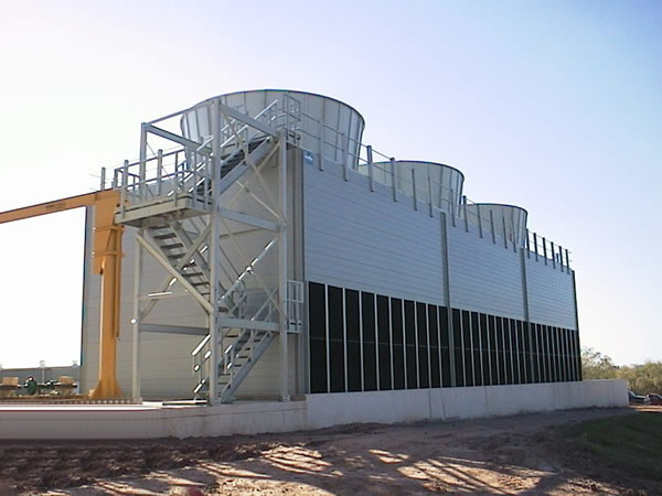 開式玻璃鋼冷卻塔是利用水和空氣的接觸,通過蒸發(fā)作用來散去工業(yè)上或制冷空調(diào)中產(chǎn)生的廢熱的一種設(shè)備。