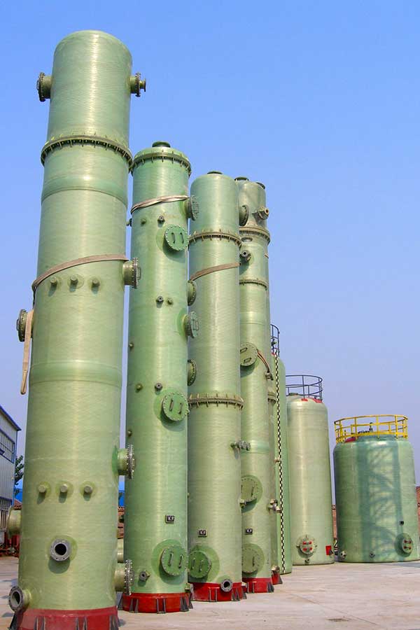 玻璃鋼塔器的應(yīng)用:吸收塔、水洗塔、洗滌塔、尾氣塔、組合塔等。